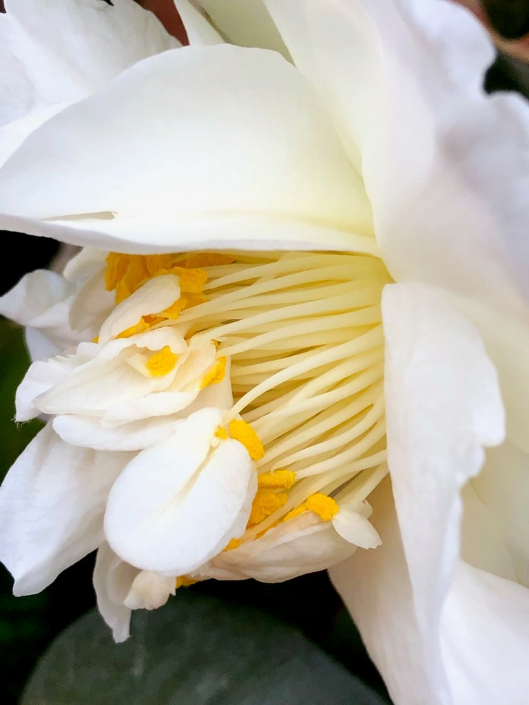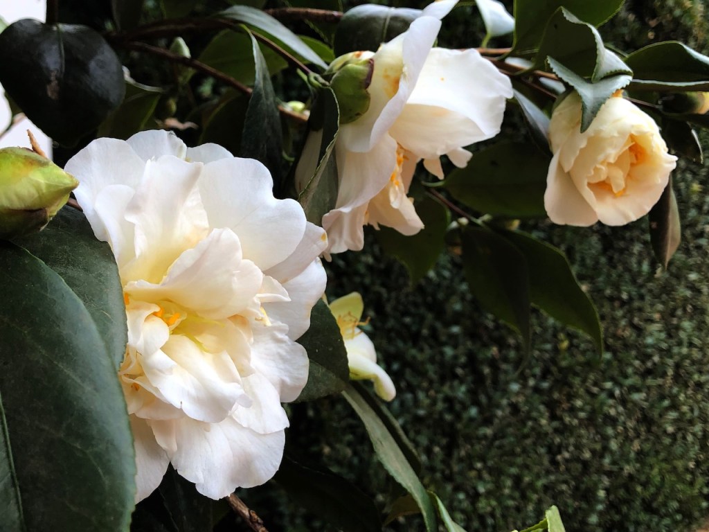 Camellia do well in our hillside patch with its ancient mix of earth – what Beechworth vignerons call greywacke, sandstone, mudstone and shale.