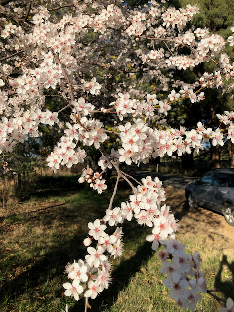 In the long eucalypt woodland bordering these roads, late in winter, splashes of pale and darker pink and white appear when the wild plums flower. These escapees from farm orchards or bird-passed pits make my day. The main image here of a beauty near Pennyweight Winery on Beechworth’s outskirts, as are the next two. The last is of another near Three Mile.